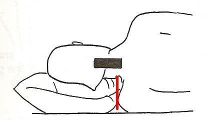 另外選擇枕頭時,大家最容易乎略枕頭的形狀,例如一顆適合平躺的枕頭,通常不適合側躺睡,因為人在側躺時應考慮進去肩膀的最外側到脖子的距離(下圖紅線),所以側躺時枕頭要高些,而平躺時側枕頭低些,所以大原則是平躺時用一顆枕頭,而側躺時用二顆枕頭。