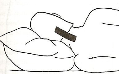 上圖顯示枕頭過高,肌肉無法適當的放鬆,長久下來,會造成頸椎、胸椎兩側肌肉不平衡,而此枕頭過高不適用於平躺和側躺