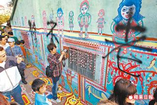 台中巿新興景點「彩虹眷村」、在網友口耳相傳下,每年吸引逾50萬人次參觀,但彩繪壁畫昨卻遭不肖人士噴上大大的「老不修」大字及多處噴污。這些美麗彩繪的創作者「彩虹爺爺」黃永阜(88歲)發現後用肥皂水卻洗不掉,一度氣得說:「不畫了!」巿議員和巿府人員全力安撫,希望老爺爺重拾畫筆,讓「彩虹」重現。